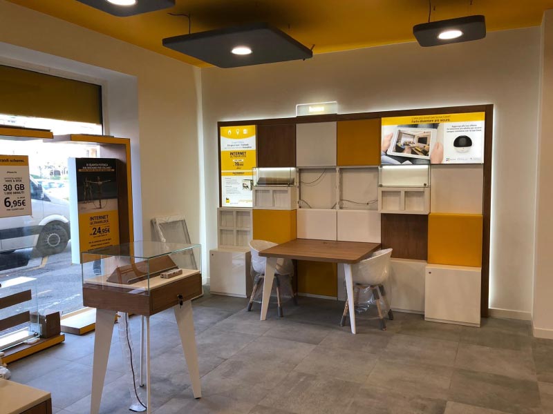 Découvrez notre galerie photos de l’agencement des locaux et d’équipement de mobilier de bureau pour la boutique FASTWEB.